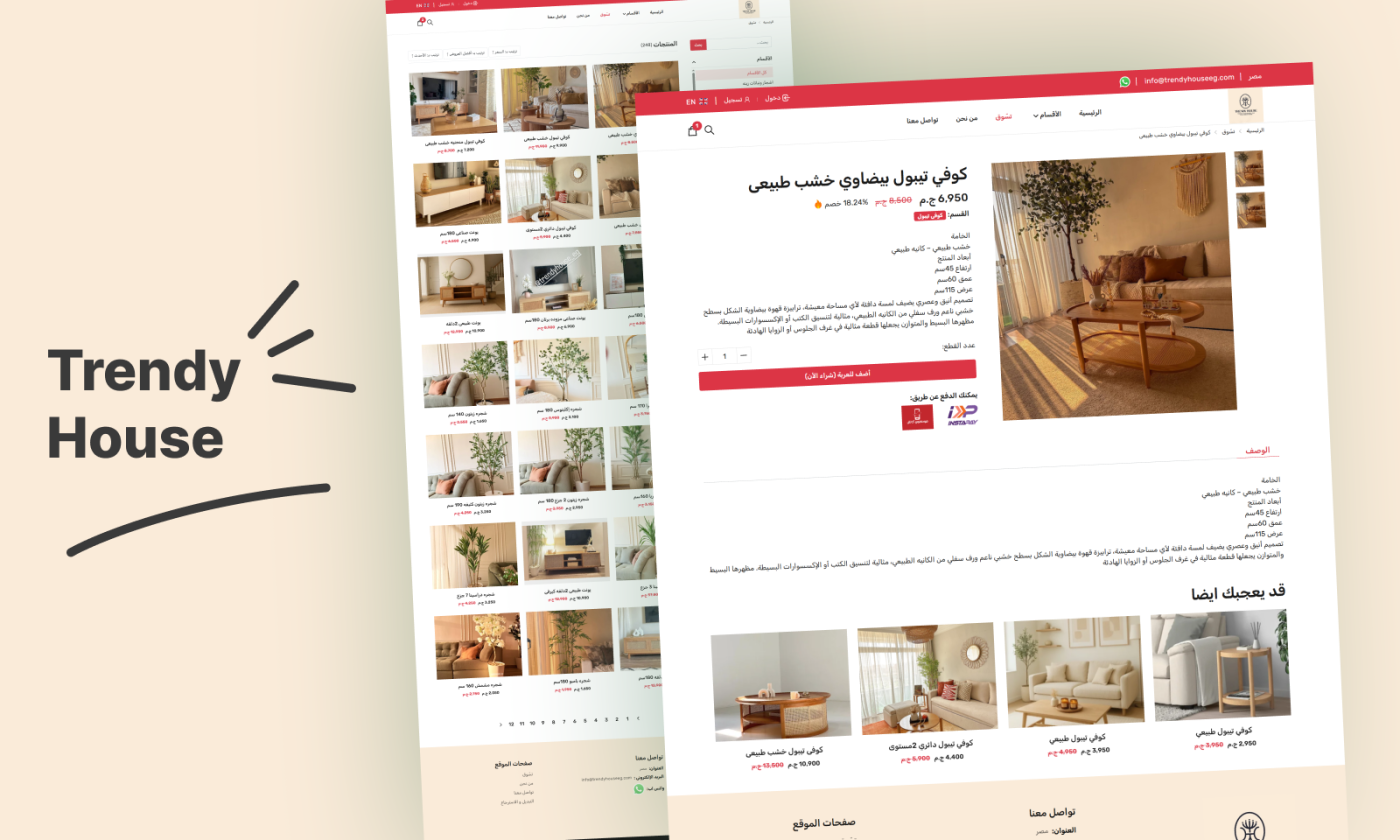 Trendy House is a fully functional e-commerce platform developed to showcase and sell modern furniture and home decor products online. The website provides a smooth and user-friendly shopping experience, allowing customers to explore a wide range of items including coffee tables, TV units, decorative plants, and home accessories.